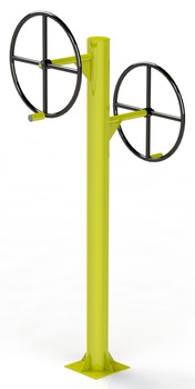 Занимающийся держась за рукоятки вращает штурвал в сторону, что обеспечивает проработку мышц рук и плечевого пояса.